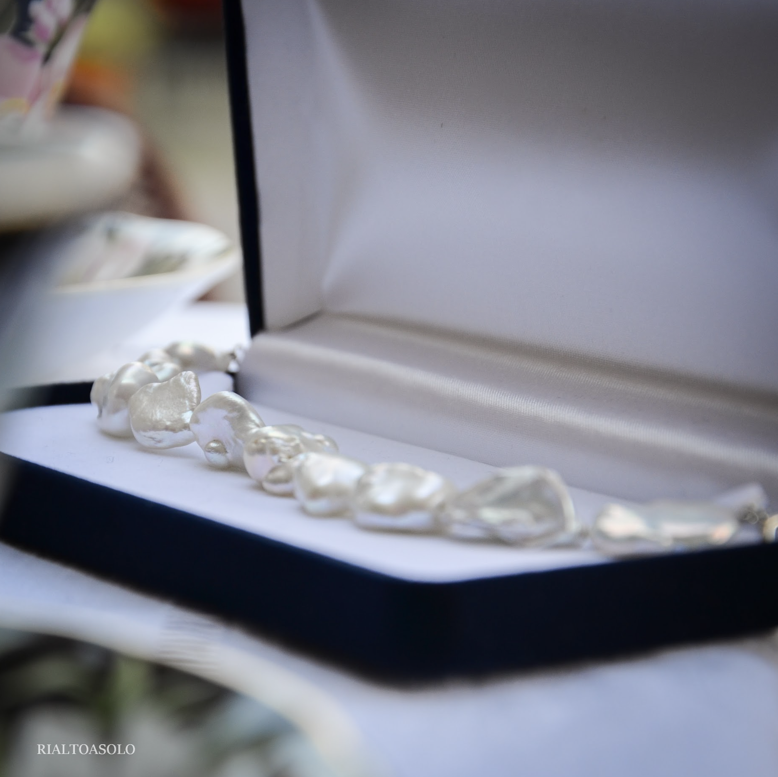 Un gioiello di classe: la lavorazione diamantata dell’argento crea un gioco di riflessi luminosi che incornicia una perla d’acqua naturale, simbolo di purezza e grazia.